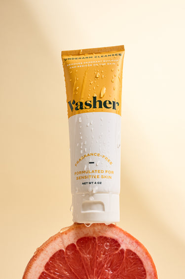 Vasher is a gentle underarm cleanser designed to remove deodorant buildup, residue and odor. It leaves your underarms clean, soft, and hydrated—without disrupting the skin’s natural pH balance.